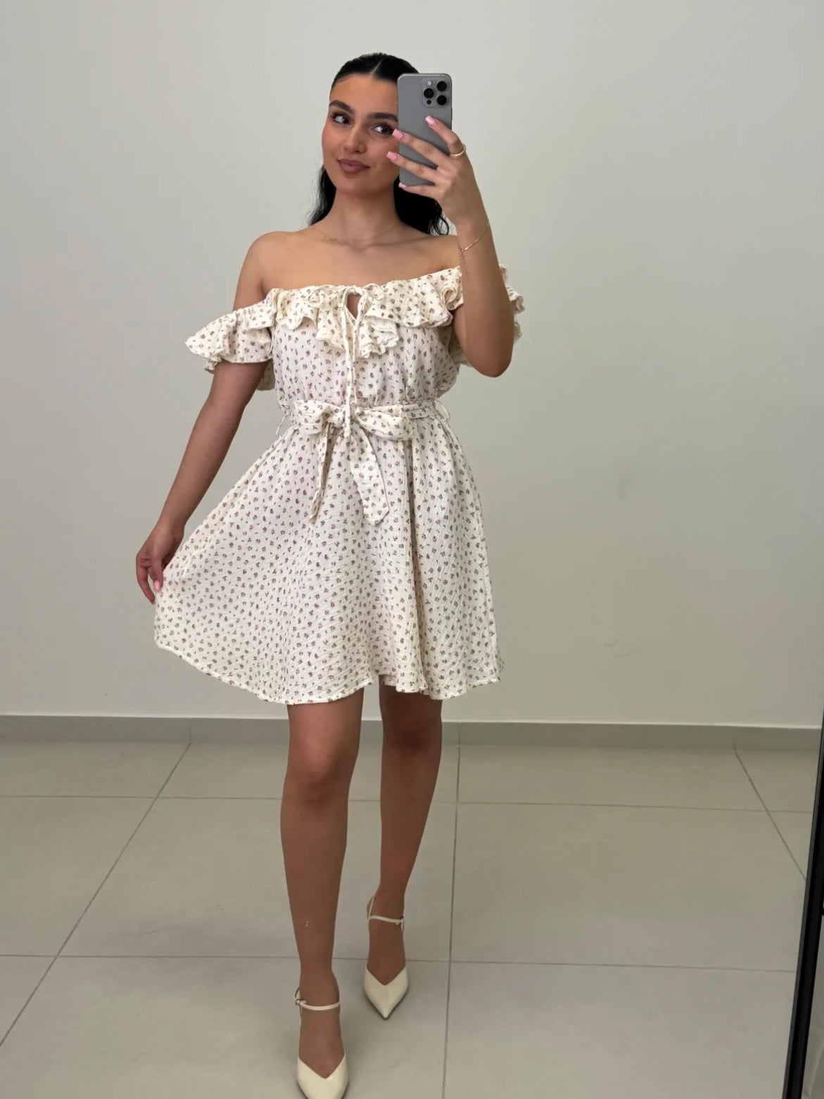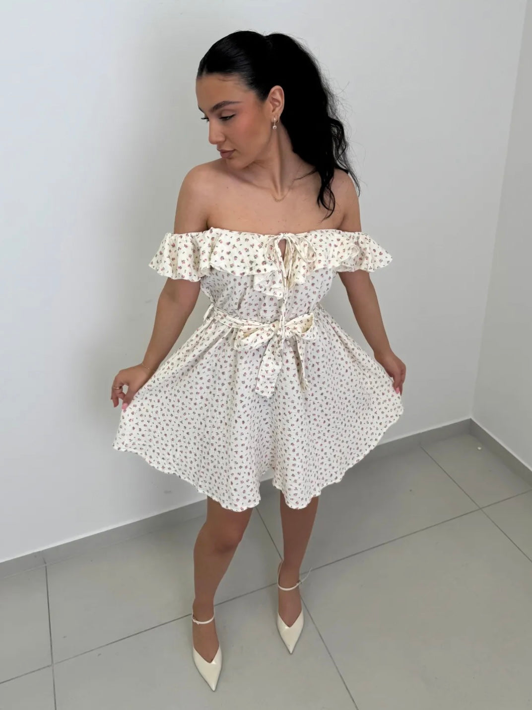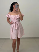 Erhalten Sie den perfekten Sommer-Look mit dem süßen Musselin Kleid Lilly! Das A-Linien Kleid ist mit einem passenden Gürtel ausgestattet und hat ein schönes Blümchenmuster. Die schulterfreie Optik verleiht Ihnen eine feminine und verspielte Note. Süß und romantisch!